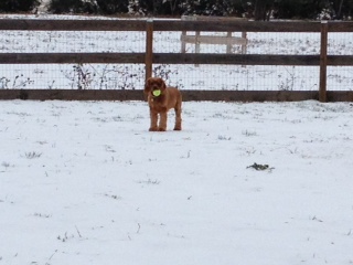 Maybelle on ice with ball